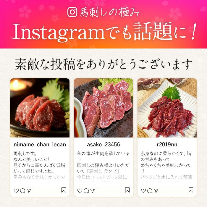 馬刺しは赤黒く見えますが、品質上問題はございません。