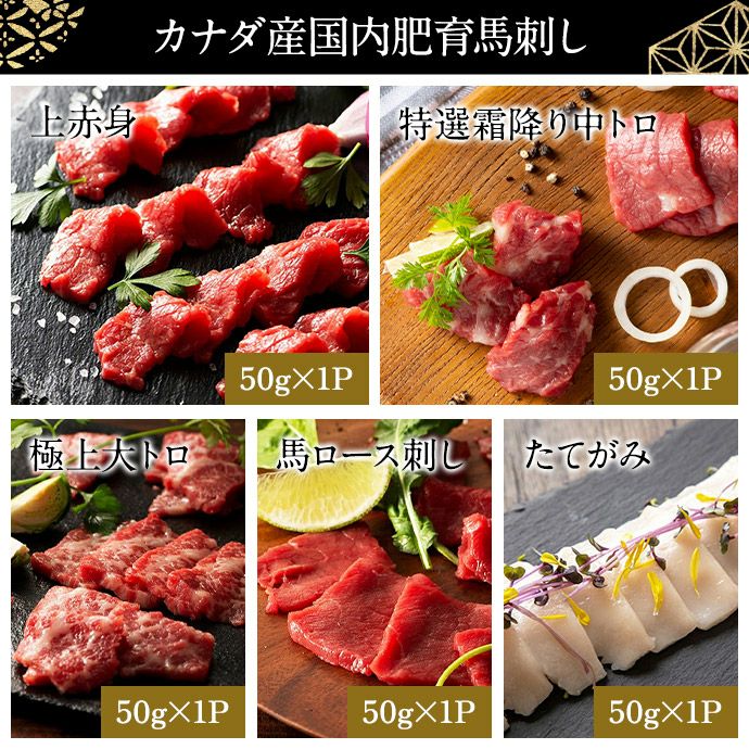 カナダ産国内肥育馬刺し 厳選セット(5種/250g)