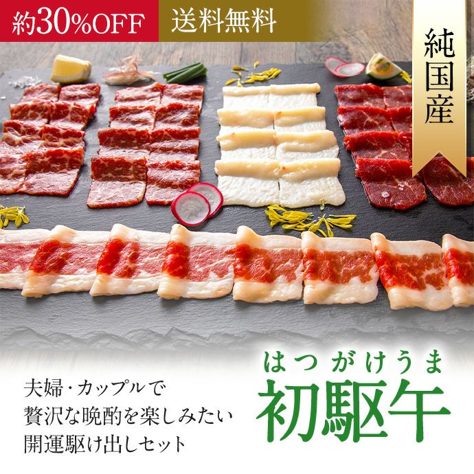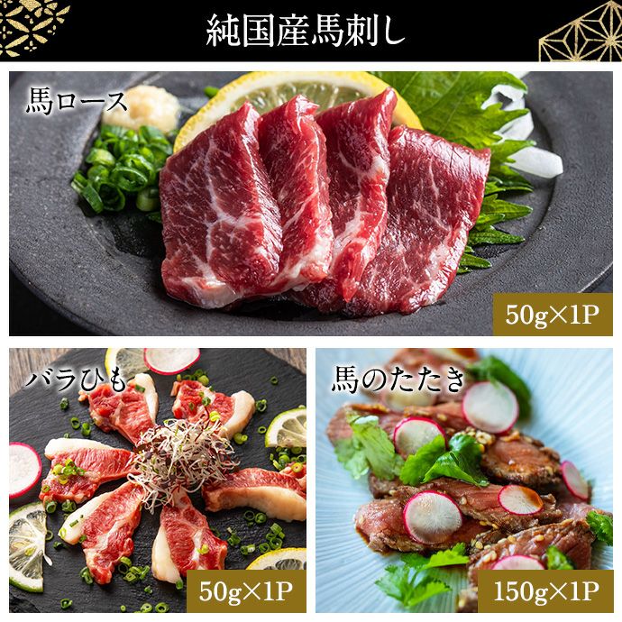 熊本生まれ熊本育ちの純国産馬刺しを、バランス良く詰め合わせた「初駆午」福袋です。
