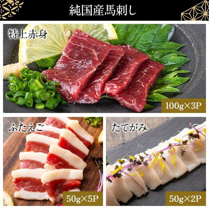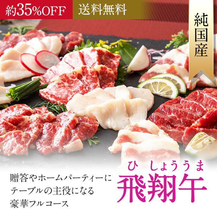 熊本生まれ熊本育ちの純国産馬刺しを、5〜8人前でたっぷり堪能できる「飛翔午」福袋です。
