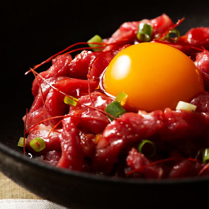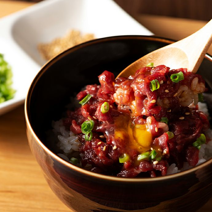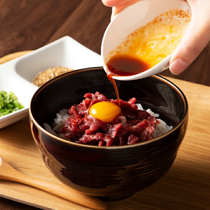 新鮮な馬肉の甘みと、とろけるような食感を存分に楽しめる「馬ユッケ」。ユッケ用に贅沢に細切りした赤身は、しっとりとなめらかで、噛むほどに上品な旨みが口に広がります。特製のタレと絡めれば、濃厚なコクと甘みが際立ち、卵黄を加えればさらに贅沢な味わいに。さっぱりとした後味で食べやすく、お酒のお供にもぴったりです。ごま油や刻みネギを添えれば、一口ごとに風味が変わり、最後まで飽きのこない美味しさ。熱々のご飯にのせてユッケ丼にしても良し。ぜひ、ご家庭で本格ユッケの味をご堪能ください。