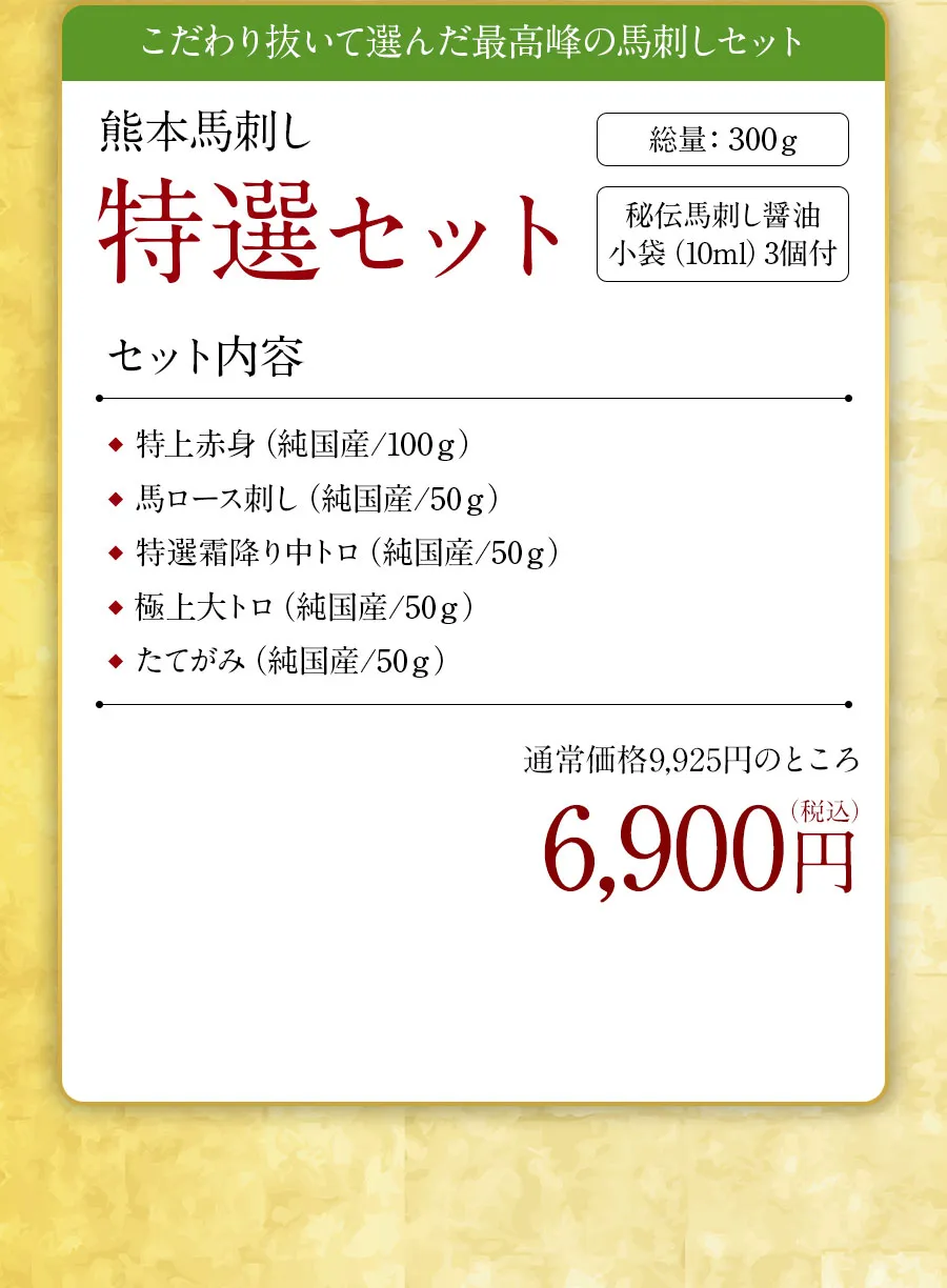 熊本馬刺し特選セットの詳細はこちら▶︎