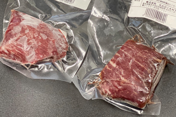 ドリップ(解凍時にお肉からにじみ出る水分)をおさえ、新鮮なまま保管できる日々進化し続ける冷凍技術と、加工を知り尽くし熟練した生産者様がいるからこそ、美味しい馬刺しをお届けできるのです。