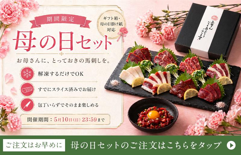 日本全国の皆様にお喜びいただけるよう、美味しさにこだわり抜いた究極の馬刺しを本場熊本から通販にてお届けいたします。